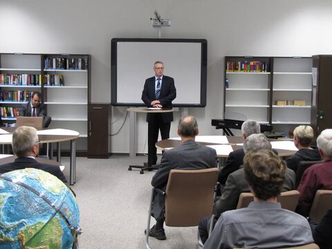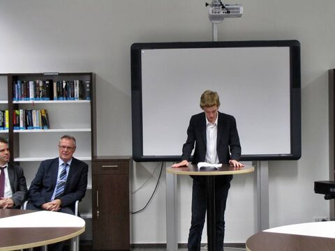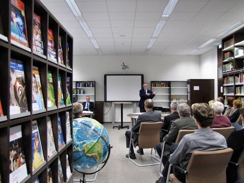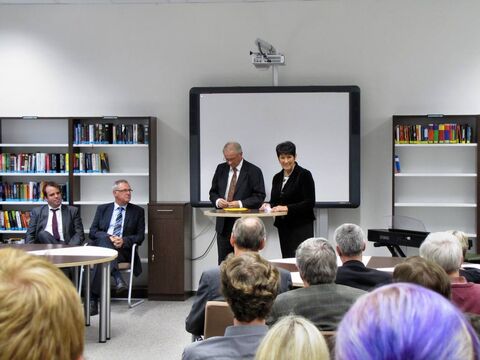 Ungewöhnlich für eine Schülerbücherei ist der Name „Gerhard und Karin Matthäi-Bibliothek“ ja schon. Damit möchte das Domgymnasium der Matthäi-Stiftung für die großzügige Förderung danken, die die Verwandlung von zwei Unterrichtsräumen zu einem multifunktionalen Lesezentrum ermöglicht hat. Wie der für die Schülerbücherei zuständige Lehrer Wolfram Paulik während der Feierstunde erläuterte, war die in einem externen Gebäude untergebrachte Bibliothek in den letzten Jahren kaum mehr als ein „Aufbewahrungsort für Bücher“. Mit der „Gerhard und Karin Matthäi-Bibliothek“ haben diese Bücher nicht nur den Weg zurück ins Domgymnasium gefunden, zugleich wurden der Bestand deutlich verjüngt, moderne Arbeitsplätze geschaffen und Computer in den auch als Vortragssaal verwendbaren Raum integriert. Zudem werden ab sofort ausgewählte Exemplare aus der für die Allgemeinheit nicht zugänglichen historischen Bücherei der Schule ausgestellt – aus Schutzgründen hinter lichtbeständigem Glas.