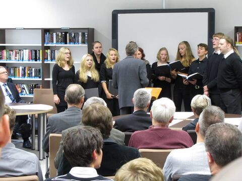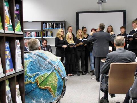 Viel Lob für seine Initiative, die Bücherei zurückzuholen, und die anschließende Realisierung bekam Schulleiter Detlev Lehmann. Stellvertretend für die Mitarbeiter und Lehrkräfte nahm er gerne an. Zugleich betonte er, dass er sich nicht an vollen, schönen Regalen sonnen möchte, sondern den Erfolg der Bücherei vielmehr „an ausgeliehenen Büchern und damit leeren Regalen“ messe. Für den täglichen Betrieb zeichnet sich das Domgymnasium verantwortlich, das dabei unter anderem vom Schulverein unterstützt wird. Dessen Vorsitzender Michael Gebhardt stellte einige der Zeitschriften-Abos und Bücher vor, die der Verein finanziert und insbesondere auch im Hinblick auf Attraktivität für Schüler ausgewählt hat. Stellvertretend für die Schülerschaft prägten Finalisten des schuleigenen Literaturwettbewerbs und der Kammerchor die Feierstunde.